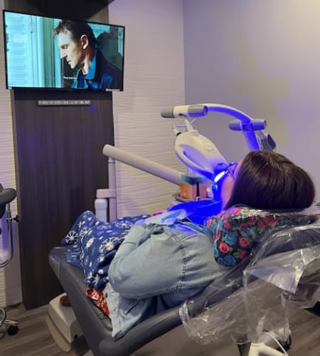 The Zoom whitening light is placed directly in front of your teeth to maximize exposure to the gel. The special light activates the gel which gently penetrates the outer-most (enamel) layer of your teeth; breaking up stains and discoloration during the process.